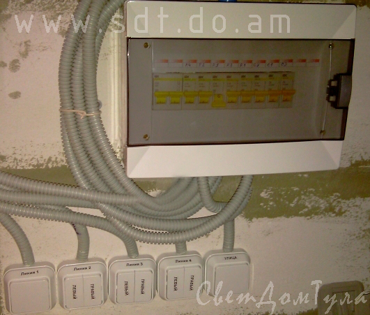 Щит вводной и выключатели по группам.