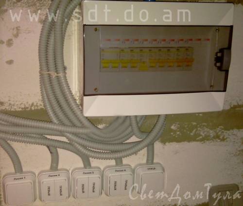 Щит вводной и выключатели по группам.